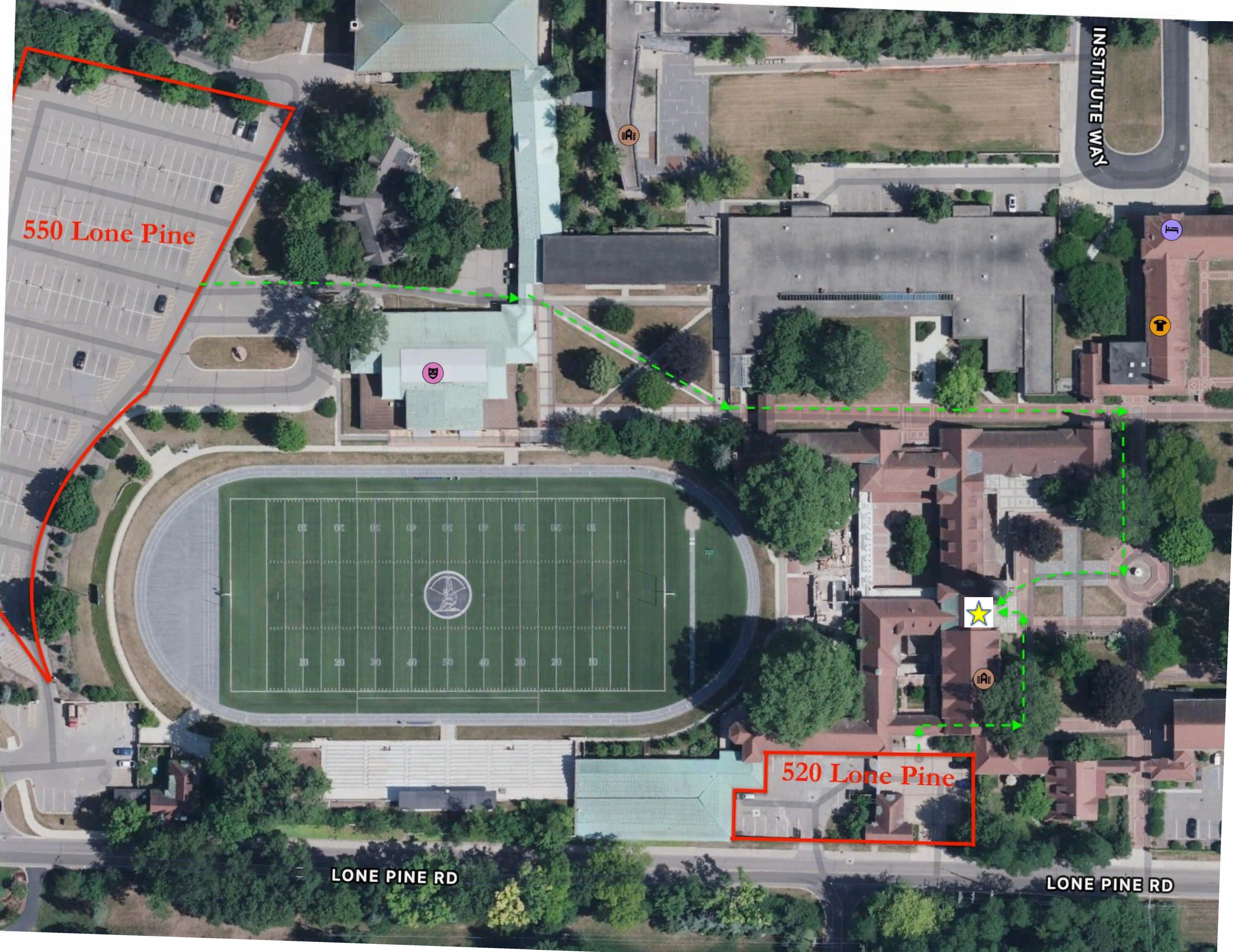The address is 550 Lone Pine Road. Information for parking and buildings is available in the tournament invitation packet.