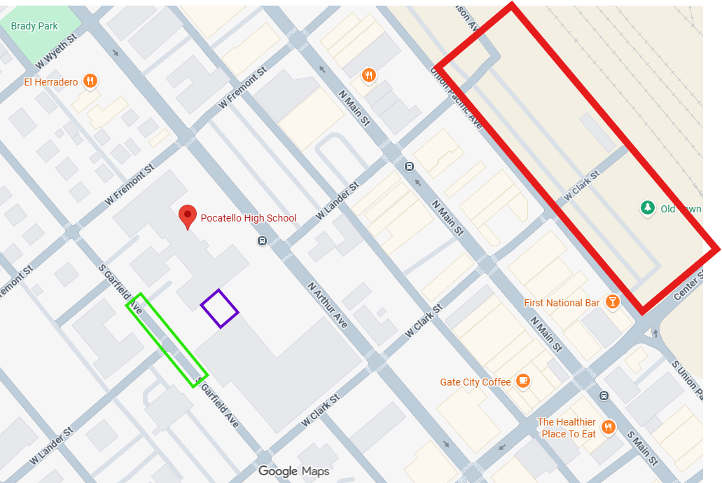 You can find a copy of the tournament schedule on the right of this page. Schools should arrive between ___________. Cars can park in an y empty parking spot in the parking lots around the building. Please pay attention to the parking signs on the street to avoid parking tickets. Busses should drop students off in the loading zone at the back of the building on Garfield. (See the green square on the Parking and Entrance Map.) Buses should then park in the Union Pacific Parking lot on Union Pacific Avenue. (See the red square on the Parking and Entrance Map.)